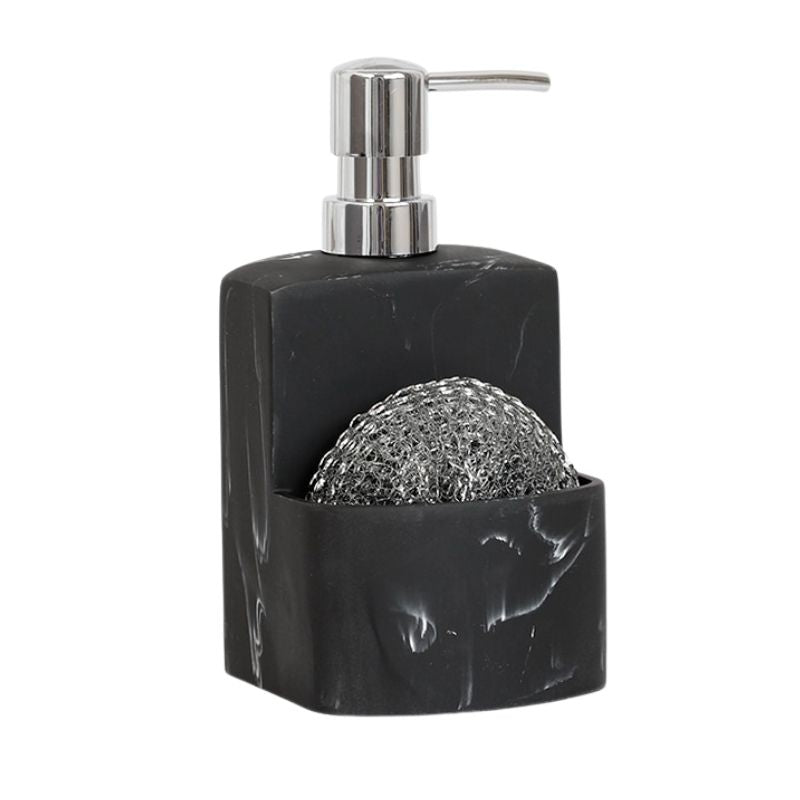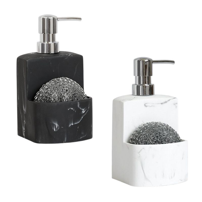 ¿Cansado de tener el fregadero desordenado? Nuestro dispensador de jabón con porta estropajo es la solución perfecta para mantener tu cocina organizada y con estilo. Este accesorio práctico y moderno, fabricado con un acabado tipo mármol negro, no solo dispensa jabón de manera eficiente, sino que también ofrece un lugar conveniente para guardar tu estropajo. Imagina un fregadero limpio y sin el antiestético estropajo a la vista. Este dispensador está diseñado para quienes buscan funcionalidad sin comprometer la estética, añadiendo un toque de sofisticación a cualquier estilo de cocina, desde el más clásico hasta el más contemporáneo.