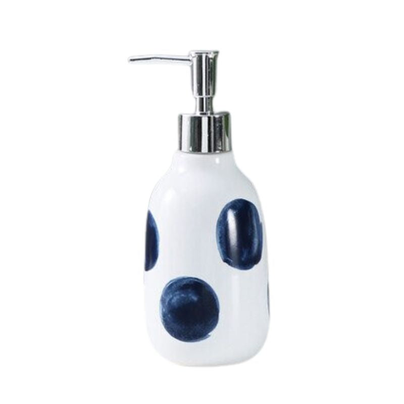 Dale un giro a la decoración de tu baño o cocina con nuestro encantador dispensador de jabón de cerámica artesanal. Cada pieza es elaborada a mano, lo que le confiere un carácter único y especial. Su diseño minimalista con lunares irregulares en azul oscuro sobre un fondo blanco puro añade un toque de frescura y originalidad. No es solo un objeto funcional, sino una pequeña obra de arte que realza cualquier espacio. Imagina la sensación de usar un dispensador que combina a la perfección con tu estilo, aportando una armonía visual y una experiencia agradable en tu rutina diaria.