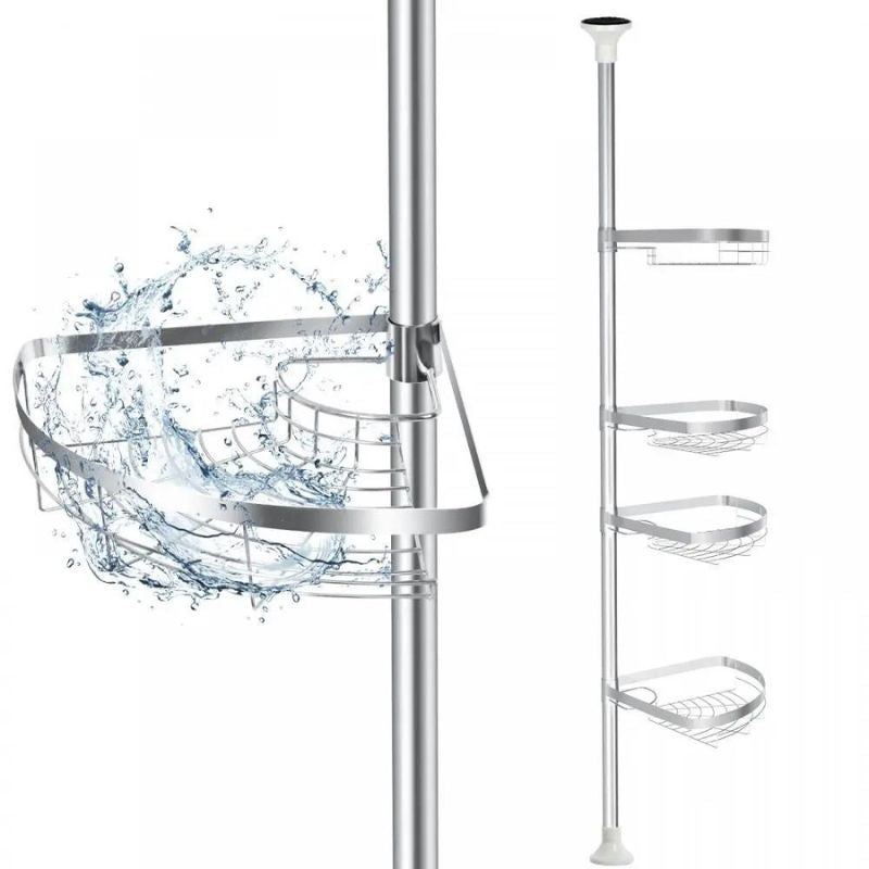 Fabricada con acero inoxidable de alta calidad, nuestra estantería telescópica de ducha de acero inoxidable no solo es bonita, sino también increíblemente resistente. Olvídate de la oxidación y el deterioro. Este material garantiza una larga vida útil y un mantenimiento mínimo, incluso en un ambiente húmedo como la ducha. Además, los estantes están diseñados para drenar el agua fácilmente, evitando la acumulación de jabón y manteniendo tus productos limpios e higiénicos. Su ajuste telescópico permite adaptarla a diferentes alturas, asegurando una sujeción firme y estable del suelo al techo.