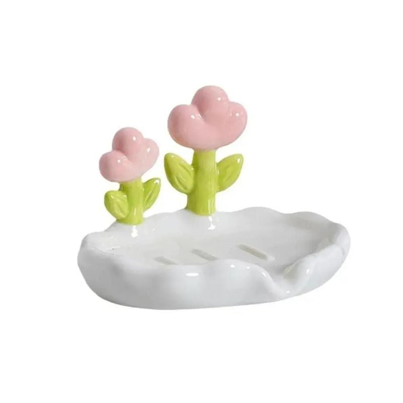 Dale a tu baño un aire fresco y encantador con nuestra jabonera de cerámica con diseño floral. Esta pieza única no es solo un accesorio práctico, sino también una pequeña obra de arte que transformará tu espacio. Imagina tus jabones favoritos descansando sobre esta superficie delicadamente ondulada, mientras dos adorables flores rosas y verdes elevan la estética de tu lavabo. Perfecta para quienes buscan añadir un detalle dulce y funcional, esta jabonera está diseñada para mantener tu jabón seco y al alcance, a la vez que embellece tu hogar con su encanto natural.