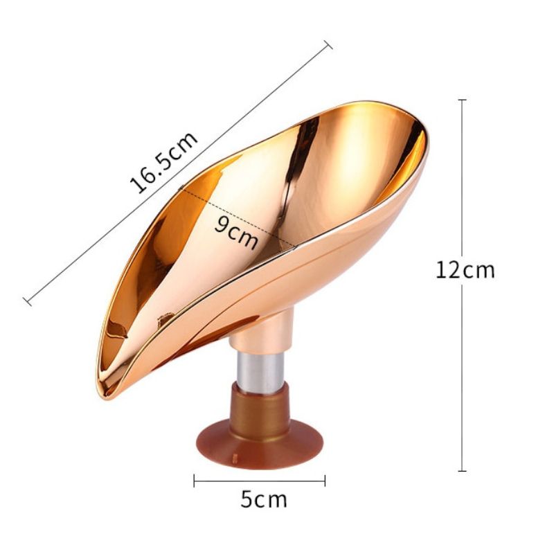 - Diseño Elegante: Forma de hoja en un lujoso acabado dorado que realza la decoración de tu baño.