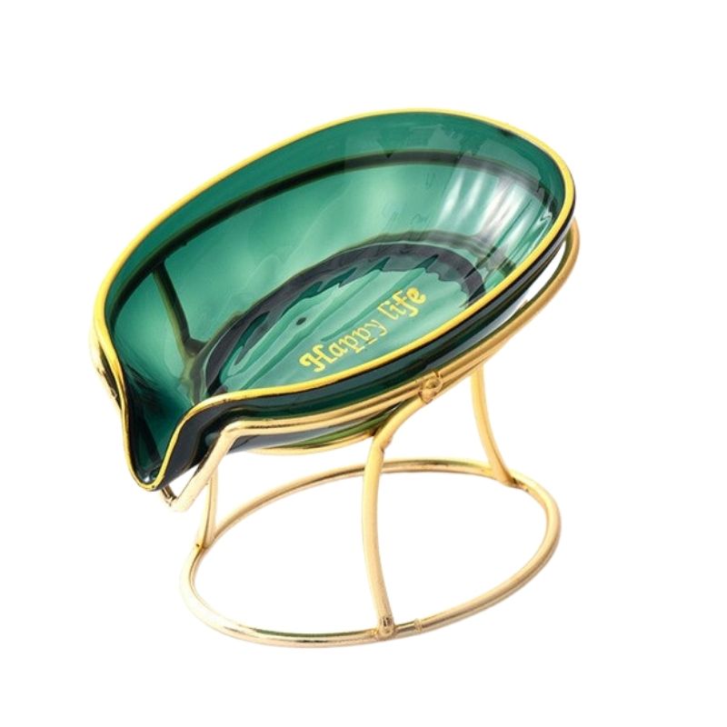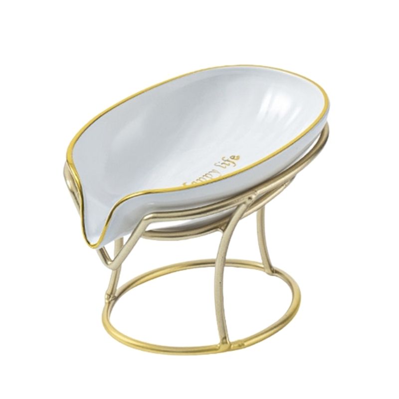 - Soporte metálico dorado que asegura un drenaje eficiente del jabón.