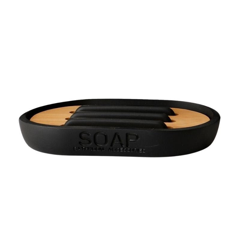 Jabonera negra con rejilla de bambú: Estilo y Funcionalidad para tu Baño